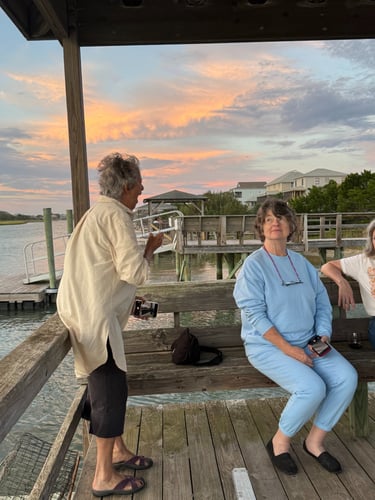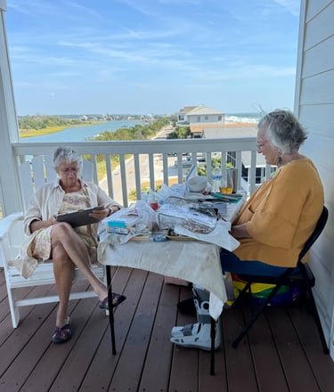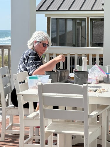 3 years ago a new friend took a chance and invited me to join her at an artists’ retreat on Pawleys Island. I took a chance and went. On arrival, I entered this big, beautiful house filled with bold, beautiful women, many of whom had known each other for years. It took no time to be enveloped in the camaraderie! Days were filled with creative inspiration, shared wisdom, and demonstration while communal meals, beach walks, and porch chats added another dimension. I left that week feeling motivated in my art and awed by the instant friendships I found. Pawley’s is a special place and Wild Hair ladies are a special breed. Do yourself a favor and join them…you won’t be disappointed! Leslie H.